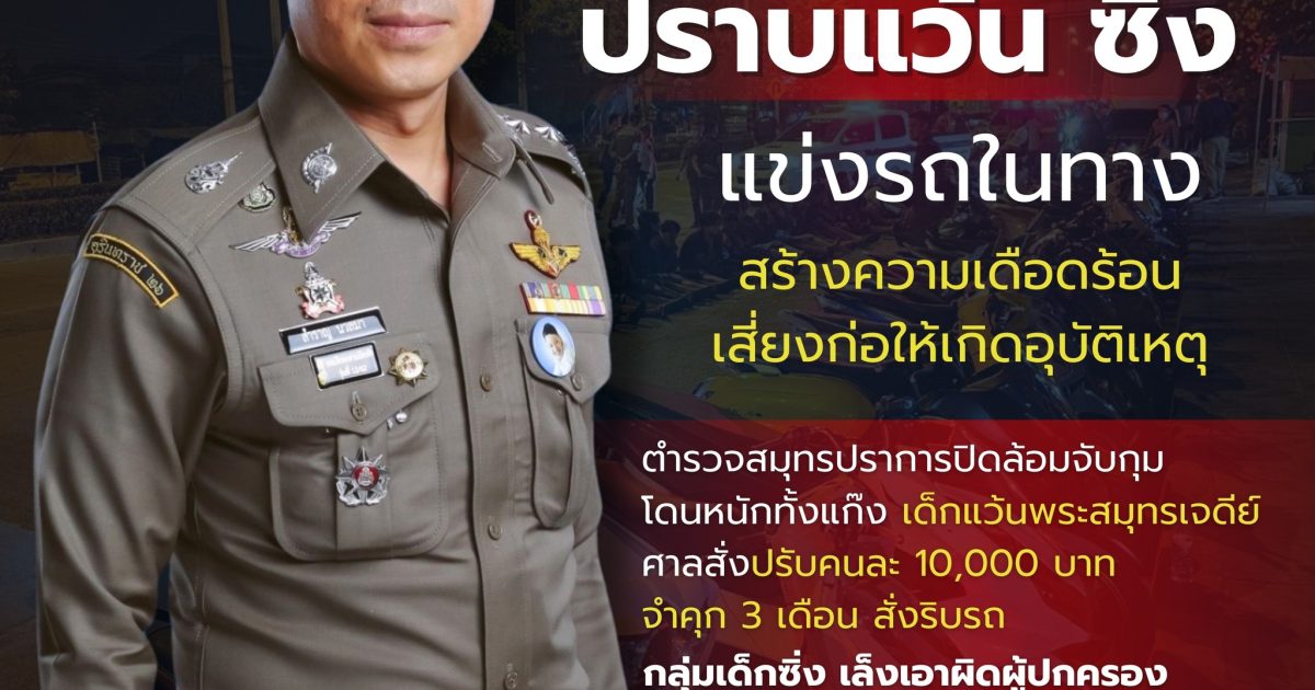 โดนหนักทั้งแก๊งแว้นซิ่งพระสมุทรเจดีย์ ศาลสั่งปรับหนักคนละ 10,000 บาท ทำทัณฑ์บน จำคุก 3 เดือน ริบรถทุกคัน กลุ่มผู้ต้องหาเด็ก เล็งเอาผิดผู้ปกครองปล่อยปละละเลย