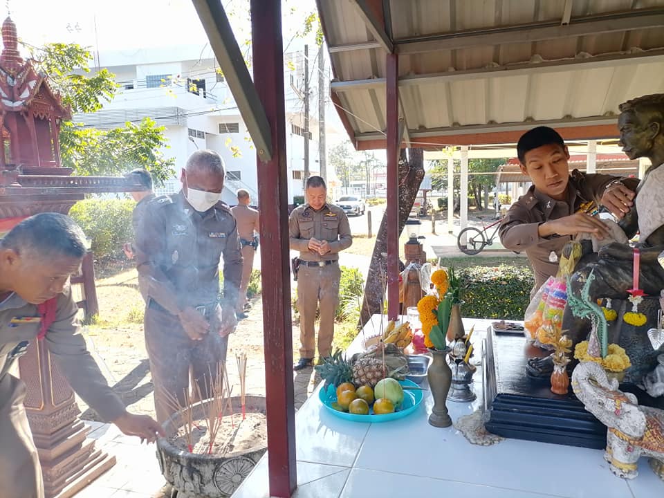 ร่วมกันกราบไหว้ศาลเจ้าพ่อขุนไกร ซึ่งตั้งอยู่ที่ ด้านหลัง สภ.นาหว้า 13 ธันวาคม 2566 โดย adminnawa / ข่าวภารกิจผู้บังคับบัญชา วันที่ 13 ธ.ค.66 เวลา 09.00 น. พ.ต.อ.ชัยทัศรัศมิ์ พรหมศิริ ผกก.สภ.นาหว้า พร้อมด้วยข้าราชการตำรวจ สภ.นาหว้า ร่วมกันกราบไหว้ศาลเจ้าพ่อขุนไกร ซึ่งตั้งอยู่ที่ ด้านหลัง สภ.นาหว้า เพื่อเป็นสิริมงคล และปกปัองคุ้มครองให้พ้นภยันตราย ในการปฏิบัติหน้าที่ FacebookFacebookXXLINELine