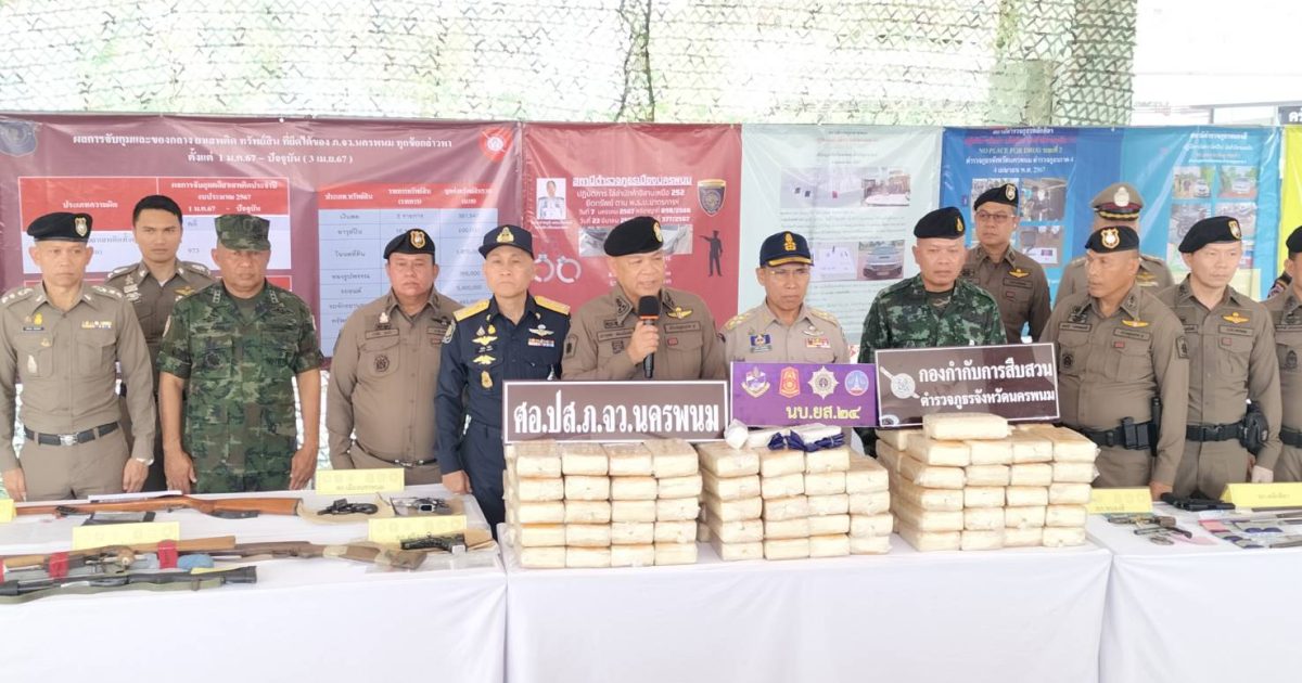 แถลงข่าวตามปฏิบัติการ ไล่ล่าเด็ดปีกนักค้าอีสานเหนือ252 5 เมษายน 2567 โดย adminnawa / ข่าวภารกิจผู้บังคับบัญชา วันนี้ 4 เม.ย.67 เวลา 13.00 น.พ.ต.อ.ชัยทัศรัศมิ์ พรหมศิริ ผกก.สภ.นาหว้า ได้นำของกลางคดีอาญาเกี่ยวกับยาเสพติดร่วมแถลงข่าวตามปฏิบัติการ ไล่ล่าเด็ดปีกนักค้าอีสานเหนือ252 พร้อมด้วยสภ.ในสังกัดตำรวจภูธรจังหวัดนครพนม ณ ภ.จว.นครพนม โดยมีผู้บัญชาการตำรวจภูธรภาค4และผู้ว่าราชการจังหวัดนครพนมเป็นประทานในพิธีเปิดการแถลงข่าว FacebookFacebookXXLINELine