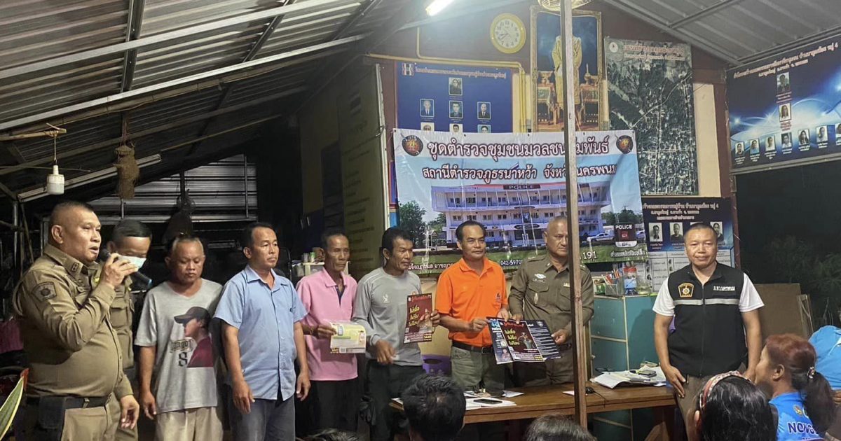 วันที่ 16 พ.ค. 2567 เวลา 19.00 น. โดยการอำนวยการของ พ.ต.อ.ชัยทัศรัศมิ์ พรหมศิริ ผกก.สภ.นาหว้า , พ.ต.ท.ธนพล วิเท่ห์วรกาญจน์ รอง ผกก.ป.สภ.นาหว้า มอบหมายให้ พ.ต.ต.สุริยา พรหมพิลา สวป.สภ.นาหว้า พร้อม จนท.ชมส.สภ.นาหว้า ลงพื้นที่ บ้านนาคูณน้อย ม.4 ต.นาคูณใหญ่ อ.นาหว้า จ.นครพนม พบปะพูดคุย กับผู้ใหญ่บ้านและประชาชนในหมู่บ้านตามหัวข้อดังนี้